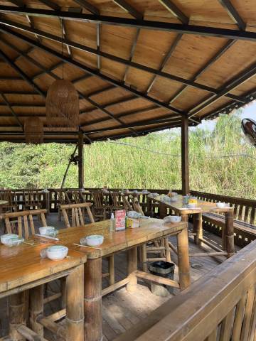 帐篷设施齐全,主打体验感,环境很不错,听着溪流声入睡,感觉已经与世隔绝了,此家民宿还可以吃饭,等待菜品的同时我们也可以拍拍照,这里的环境和服务绝对一流!完全没有什么避雷的地方,院内也很宽敞,院内还有小狗和小毛驴,帐篷里配有空调和电热毯,完全不用考虑冷热问题!这边也有洗衣房,来版纳游玩那么久,第一次深刻感受到亲近自然的感觉,这家民俗老板人很好,服务也周到!版纳之行值得推荐!