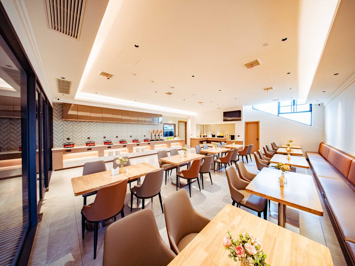 全屋智能语音控制超省心,喊一声小度就能调灯光、控空调,AI机器人还能送餐送物,科技感拉满。最惊喜的是床品,柔软亲肤不说,隔音效果绝佳,搭配品牌“深睡眠”理念,旅途疲惫一扫而空。卫生间干湿分离,莱芬吹风机和品质洗护用品诚意满满,细节处尽显用心。