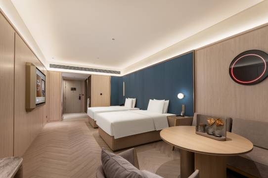 房间特别大好舒服😌还有茶台特别好看。服务员态度非常好👍早餐多种多样好丰富也好吃。外卖会非常方便机器人送上去的比较方便快捷。还有健身房棒棒哒