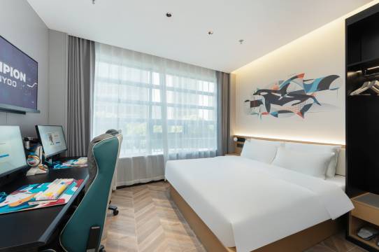 入住体验超棒!房间整洁干湿分离,床品舒服好睡。细节到位,有一次性耳机罩,服务贴心高效。位置出行方便,电竞+住宿双在线,必须回购!