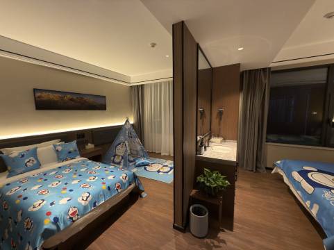 房间设施齐全,宽敞干净,有地暖、空调、加湿器。很适合家庭出行,前台小姐姐服务周到热情。