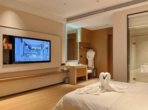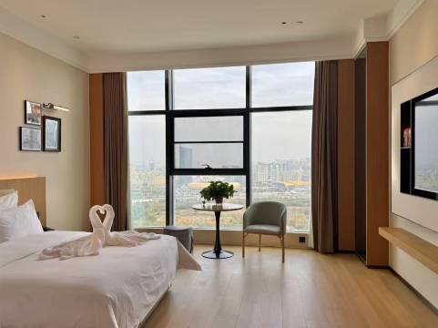 酒店交通位置很好,楼下就有超市和夜市,很方便,停车也便利。房间很宽敞明亮,邻近年关入住率不高,楼层很是安静。三楼有很大的健身中心,带着房卡可以使用,差旅过程中健身两不误。酒店前台小姐姐的服务也很热情周到,对这个城市的印象有加分哦。