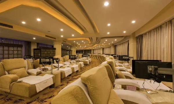 酒店客房装饰豪华,以现代设计风格为主,别具一格,设施齐全,服务优质。酒店建有10个露天泡池、室内标准游泳池一个、270个餐位的中餐厅、容纳300人的宴会厅(多功能厅)、大会议室(70人)、小会议室(30人)、棋牌室、KTV包房等,是商务、休闲、集会的理想选择。