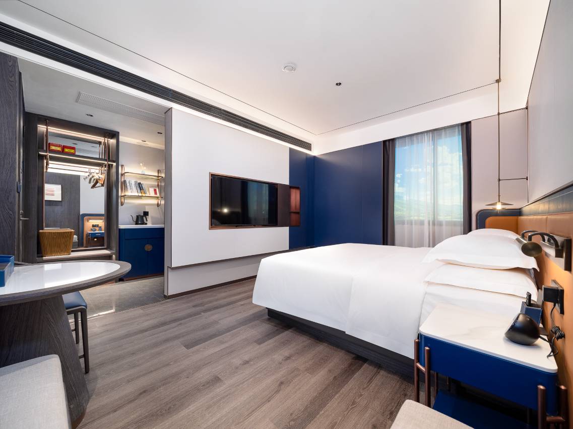 酒店刚开业不久,设施很新。入住无押金,旁边就是网红土鸡火锅店,吃饭非常方便。距离高铁站很近,早上酒店有送站服务。服务超热情,退房赠送了伴手礼。这次体验超出预期,超级满意。