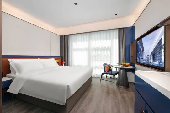 酒店装修非常好看,房间设施设备也很齐全,智能控制的窗帘电视空调,前台有求必应,下次还会再来的