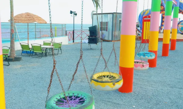 汕头体育中心演唱会期间住店客人双人双程接送服务:这是酒店的一大特色吧。酒店在海边,第二天早起还看到了日出,为了演唱会而来,还享受了半天海边度假,挺好的,看到了很多适合小朋友的游乐设施,夏天会更热闹吧