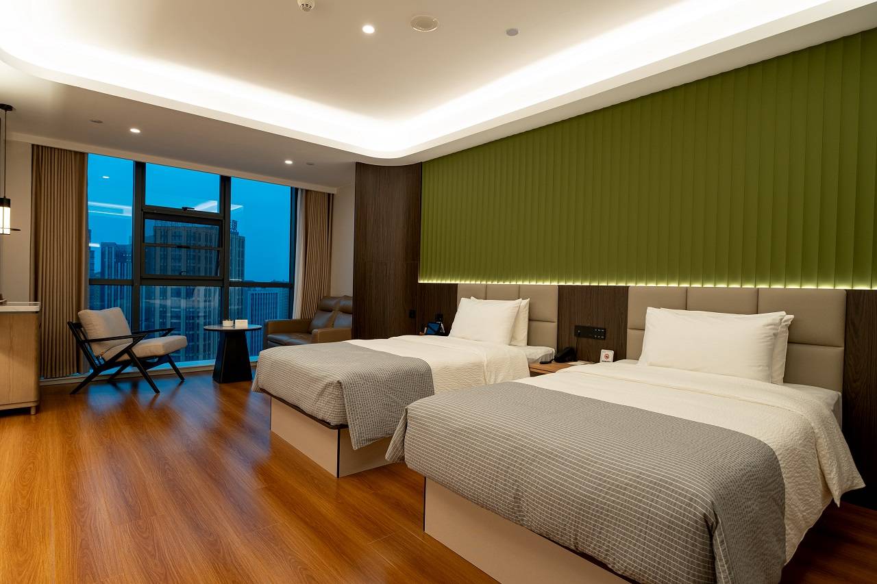 房间干湿分离,离三门峡南站近。免费接送高铁站,免费一日三餐。房间有各种零食,纯净水随便拿,不限量。房间智能语音拉窗帘,开灯,唱歌。还有免费健身房。服务态度很好。下次再来