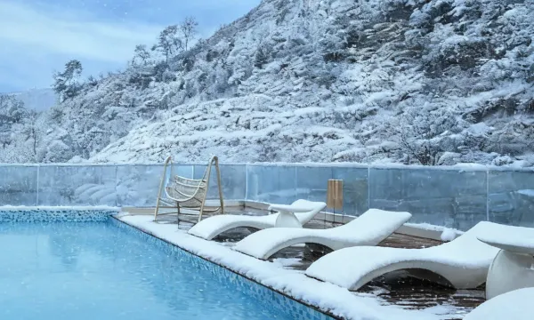 酒店在白石羌寨里,目前淡季,有点冷,不过房屋环境很好,楼上还有室外温泉,服务也超级棒,前台可帮忙交通,交通也不用担忧。