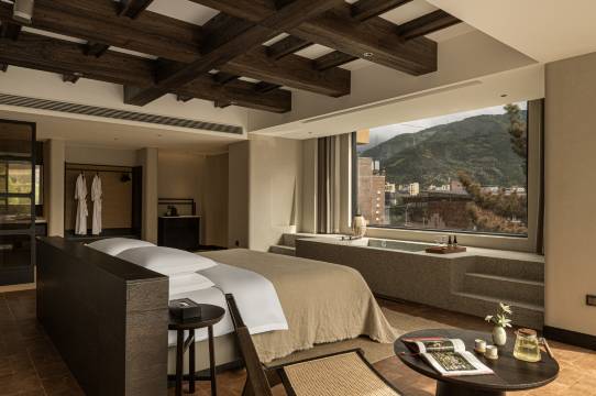 我们入住的时候有点晚了,带一个小娃娃,看前台的服务员看到我带了个小朋友给我升级了一个亲子房,多巴适的,而且前台那个服务员服务之巴适,把我们行李给我们送到房间里头,把房间里面的那些咋个用都给我们说的很巴适,房间里头还有小杜,很方便,这边确实也很不错,看到远处的雪山,走着走着就来定这了,但是确实阔以阔以。