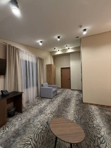 这家新酒店位于一片苏联时期建筑群的居民区内。我们需要一家靠近赛兰汽车站的酒店。酒店入口五米范围内就有一家商店、一家糕点店、几家快餐店和一家咖啡馆,但我没看到任何可以散步的地方。白天可以欣赏到白雪皑皑的山峰美景。一位和蔼的年轻男士很快帮我们办理了入住。房间里的一切都很新,而且都能正常使用。这家四星级酒店的毛巾洁白无瑕。在此之前,我们在塔什干住过一家酒店,在马来西亚住过三家酒店。浴袍也像新的一样。淋浴设施不错,还有电热马桶、地暖和一个高档的洗手池。房间和走廊都铺着厚实干净的地毯。酒店还有一个法式阳台和一个储备充足的迷你吧。床很舒服。有两点需要改进:枕头和房间的装饰(所有东西都是米色的,看起来很压抑也很廉价,尽管很明显酒店在浴室装修上花了数十万卢布)。房间的墙壁和窗帘与浴室的风格不搭调。我们没吃早餐,因为很早就离开了。我看到了那家咖啡馆——很漂亮。