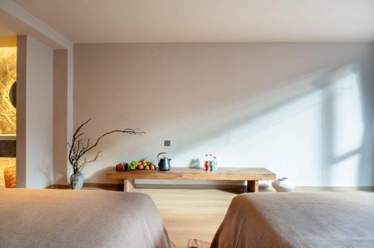 酒店的硬件设施亦十分周全。屋内配有地暖,即便山野寒夜亦温暖如春;卫浴间设有浴缸,徒步归来泡去一身疲惫,可谓体贴入微。