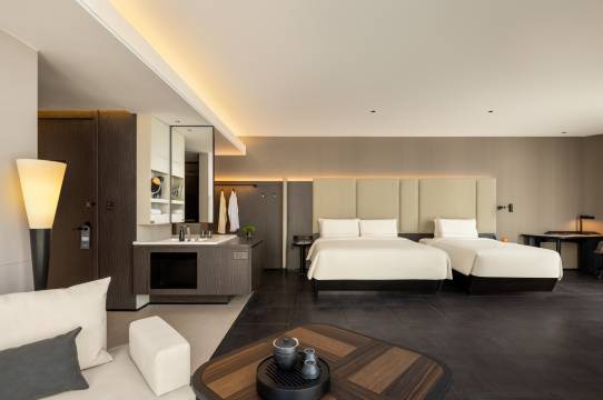 新开的酒店,各方面都不错,大堂明亮,有自制茶饮,可以自己搭配煮茶,可以借书看,有三个机器人可以送东西,挺方便的,房间的卫生做的很好,干净整洁,整体都很好。