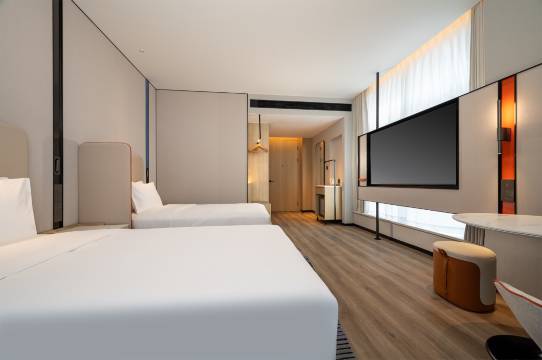 距离看演唱会特别近!地理位置简直太好了,无论是地铁还是打车都很方便。而且是才新开的酒店,设施很新,房间的智控系统做的也不错。因为有日常健身的习惯,正好健身房器械多,环境也很不错。早餐好吃,品种多样,晚上楼下还有一条街的夜市,旁边也有龙湖的商圈,可以期待一下。