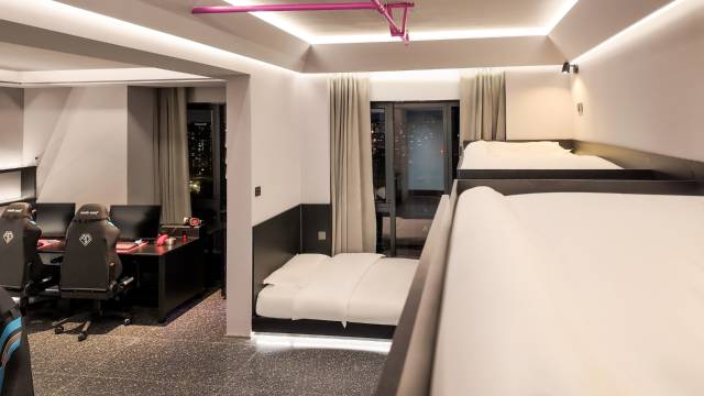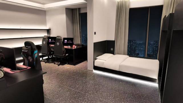 房间设计超带感,氛围灯带一开直接电竞buff拉满!高配电脑运行3A大作丝滑流畅,画质全开也不掉帧。超大落地窗视野绝佳,一边游戏一边看夜景简直不要太享受。网速飞快,开黑团战零延迟。卫生细节很到位,干净整洁还带着淡淡的消毒清香,住着特别安心。前台小姐姐响应迅速,需要什么随时解决。绝对是电竞玩家和游戏迷的宝藏落脚点,下次开黑还选这里!