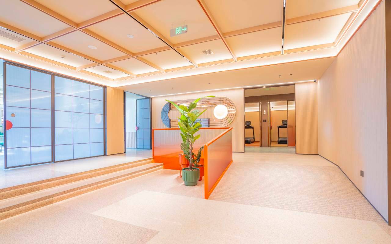 酒店位于佛山南海千灯湖商圈,毗邻佛山千灯湖和金融高新区商圈,距离佛山市区约5分钟车程,酒店附近有千灯湖公园、致优越城、南海万科广场、城市广场、百花时代广场、千灯湖环宇城等大型商业中心,沃尔玛超市等大型购物商场,与美丽的千灯湖公园近在咫尺,千灯湖风景在房间内一览无余,酒店周边吃喝玩乐一应俱全,出行交通便利。酒店整体色调以大地色系为主,自然的绿色和桔色作为空间的点缀色,烘托空间活泼,自由,清新的气质。设计风格则是围绕桔子酒店的主要打造的加州阳光风格进行设计延伸的,融入生态,格调,开放的理念来表达酒店的一种品质感和低奢感。设计手法采用中轴对称的形式,将动线一分为二,分区明朗。将公区打造成一个开放的大堂空间,突出酒店功能的灵活性。材料上利用“艺术玻璃”“琉璃砖”“金属”“木”“藤编”“格子窗”等元素表现出酒店的复古,经典,格调的气质,意图打造一个自然,活泼,自由,格调的空间环境