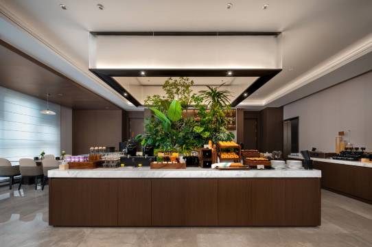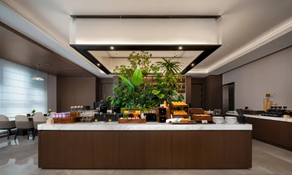 早餐区域宽敞明亮,品类丰富且新鲜度高。热食区有现做的粉面和煎蛋,冷餐区水果、甜品琳琅满目,还有本地特色小食,满足了不同口味的需求。工作人员及时收盘补餐,服务细致入微。