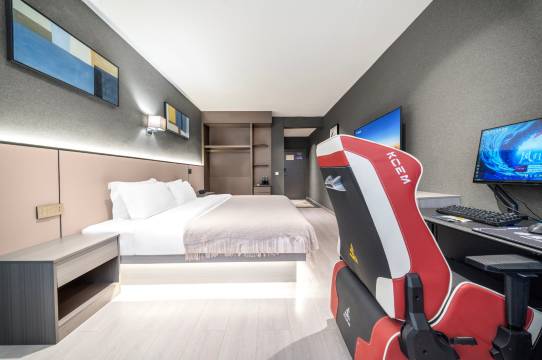 欢迎入住漫舟电竞酒店铜仁古城店,酒店配备了强劲的显卡,面对《绝地求生》《赛博朋克2077》等各类大型3A游戏,都能轻松驾驭,稳定帧率,为您呈现丝滑流畅的游戏画面。搭配机械键盘,按键手感舒适,触发灵敏,每一次敲击都反馈清晰,无论是激烈团战还是精准操作,都能助您一臂之力;专业电竞鼠标,拥有高精度传感器,定位精准,dpi可自由调节,满足不同游戏场景和个人操作习惯,助您轻松实现“甩狙”“瞬秒”;沉浸式电竞耳机,带来7.1声道环绕音效,能让您清晰捕捉游戏中的细微声音,敌人的脚步声、枪声方向都能精准判断,真正做到听声辨位 。