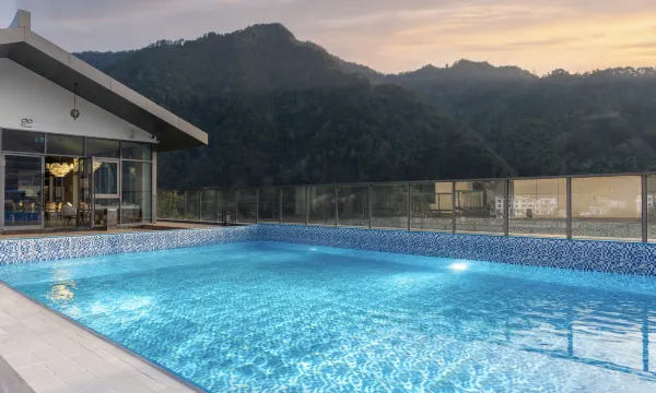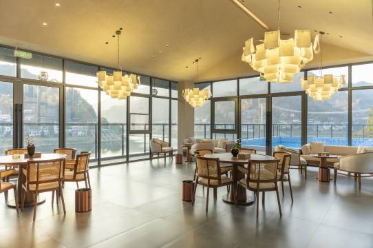 丢下城市的喧嚣,静静的放松,也是一种享受,推开房门就是一幅流动的山水画。超大的落地窗和阳台,让我们躺在床上就能欣赏到碧绿的江水,房间很大,设施完善,三楼还有泳池,下午茶,