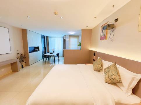 环境很好,附近特别多好吃的还有商场,打扫得也非常干净,床睡起来非常舒服,客服小姐姐有问必答,下次还会继续选择的!