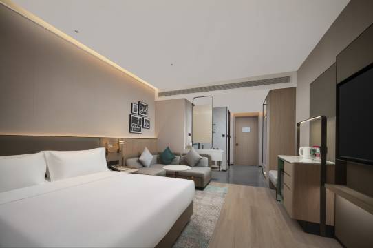 酒店刚开业一个多月,设施都是新的,大堂经理非常nice。有地面停车场,电车有充电车位很方便。非常值得推荐,房间没有任何异味,装修简洁时尚,是我喜欢的酒店风