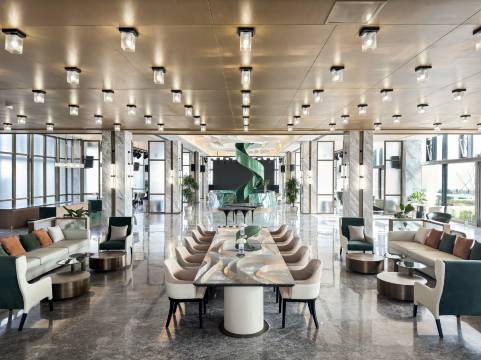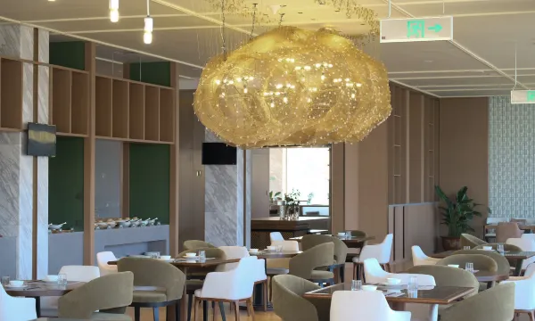 酒店选址很有特色,坐落于庐江矾山的千年矿坑遗址之上,将废弃的工业遗迹与现代野奢风格巧妙融合,行走其间能感受到厚重的历史肌理。这里最动人的是傍晚的落日,夕阳洒在崖壁与山峦间,光影层次丰富,氛围感拉满。酒店整体设计简约大气,公区很适合拍照打卡,既能触摸岁月痕迹,又能饱览自然盛景,是很有记忆点的度假体验。一点小意见,如果能提供天文望远镜就更好了 晚上的星空也很美。