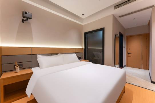 这次入住体验超棒!房间装修是简约的原木风,温馨又舒服,床品软乎乎的躺上去特别解乏,睡眠质量直接拉满。卫生间的设施很齐全,瓷砖质感也好,干净程度完全挑不出毛病。房间里还配了投影和书桌,不管是休闲观影还是临时处理工作都超方便,细节做得特别到位。服务也很贴心,工作人员响应快,整体性价比绝了,下次来还选这家!