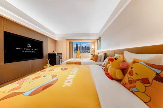 美豪丽致酒店是艺龙酒店科技旗下的中高端城市生活方式品牌,传承数十年中高端酒店经验,轻奢民族品牌。其 3.0 版本以 “居亭有间” 理念打造摩登东方空间,融入非遗文化,具有较高的设计美学和产品品质。位于汕头核心区域,直通万象城商圈,周边商业氛围浓厚,购物、娱乐设施丰富。步行 5 分钟即可到达龙眼路夜市,各类特色小吃琳琅满目,满足宾客的味蕾需求。此外,酒店交通便利,打车 10 分钟可到汕头站,方便宾客的出行。装修风格为轻奢现代风,采用油画装饰,尽显格调。房间内配备智能马桶、干湿分离的卫生间,还有 65寸大电视机、冰箱、迷你吧、茶水间等设施。同时,房间内提供香氛品牌的洗发露、护发素、沐浴露等,细节之处尽显贴心。美豪丽致酒店以精细化服务著称,其服务涵盖 “仪式感、商旅无忧、生活方式” 三大模块,致力于提供及时响应、超出预期的全程无忧体验,让宾客感受到家一般的温暖。