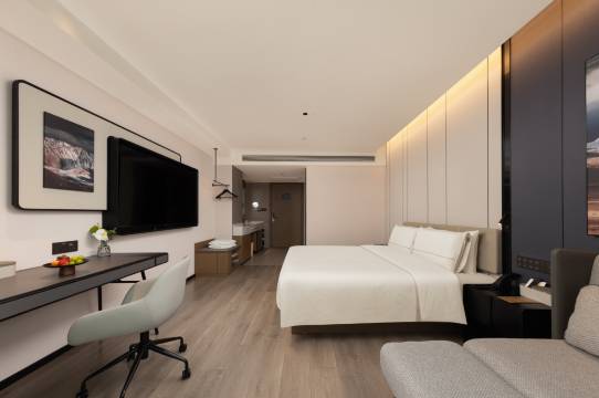 这家酒店很不错哦!位置优越,地铁就在门口,酒店干净整洁,前台微笑服务,房间进去非常温馨,床品睡的很舒适,非常喜欢这家酒店