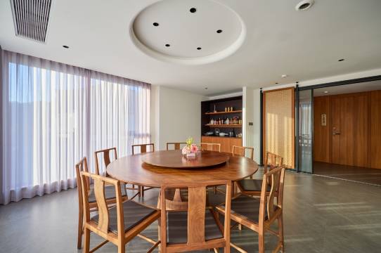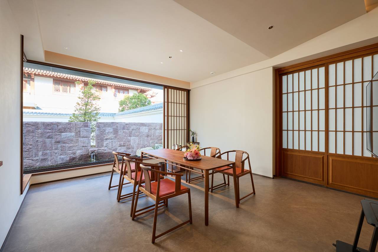 短暂的入住、留下了深刻的印象。管家小妹妹很热情,邀请我喝茶,老板也很好,我们聊的很开心,房间很干净,这次订的是一件庭院大床房,落地窗前是一颗挺拔的枫树,早晨起床阳光晒在庭院的景色特别温暖,设施不像民宿,完全是五星酒店的配置。值得一提的是,早餐很好吃很丰盛,坐在落地窗前吃着美味的早餐,远眺山峰,心境也豁然开朗。下次还想再来体验!