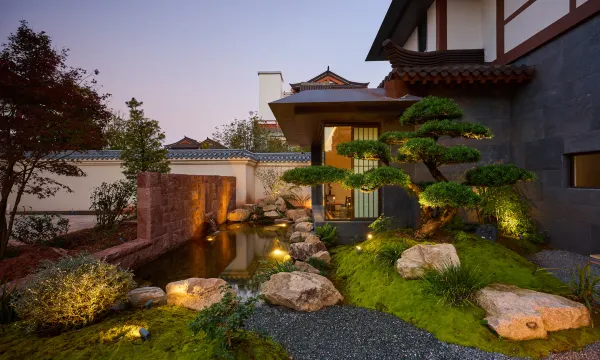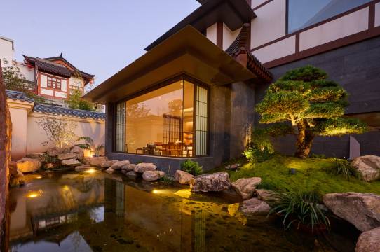 位置在武夷山市区闹中取静,庭院是精致的日式风格,一步一景,绿意满满,安静又治愈。