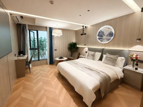 环境很优美,很安静,又很雅致,房间设施很新颖,有一股很典雅的感觉,洗手间有智能马桶,还有补光的镜子就很方便女性,门背后还有全身镜,挺好的,各方面设施配套都很参考实际出发,是一个很好,值得推荐好评的酒店!