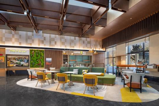 近高铁站的酒店,本地特色美食也能在酒店内部体验到。室内外的温泉特别出片,适合拍照打卡。大堂设有免费的饮吧,除了有现磨咖啡外,还能调配本地特色饮品,也可以根据自己喜欢的口味调配。酒店还贴心设计了24小时健身房和室外泳池,非常适合保持运动习惯的旅客。