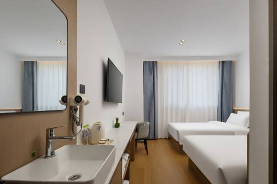 卫生干净床上用品也干净,房间智能化,服务非常好,特别是前台的两位美女特别热情,还给我免费延迟退房时间,特别感谢。非常推荐这家酒店,环境也非常好。