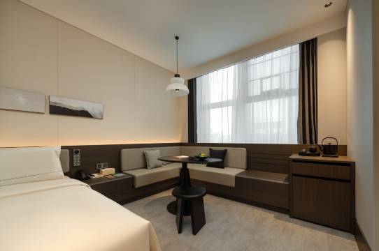 新开的酒店,房间的色调和格局都很舒适,卫生打扫的很干净,空间足够,两张床可以并起来。赠送了深夜粥道,有两款粥、一些小咸菜和几种蒸点。早餐比较丰富,酒店地理位置也很方便,出行可地铁或者直接打车去市区主要的几个公园和商区都不远。推荐这个酒店。