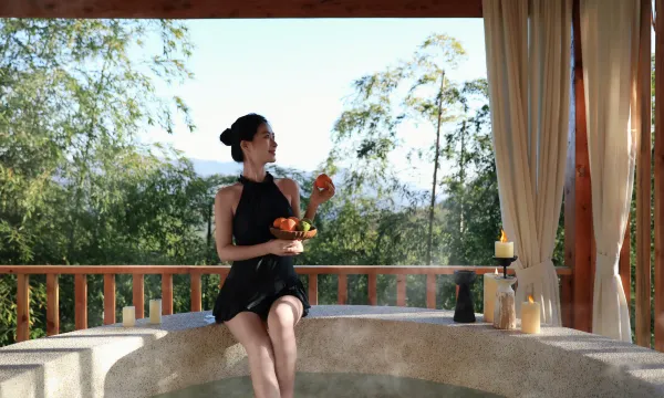 名副其实的“云端民宿”,工作的压力在这里被彻底清零。推开窗就是无边无际的竹海,风一过沙沙作响。晚上边欣赏风景边户外温泉,蓝调时刻真的非常出片。民宿的每个空间都引导你面向山野,让人不自觉地放下手机,与自然和自己对话。是一次真正的心灵充电。