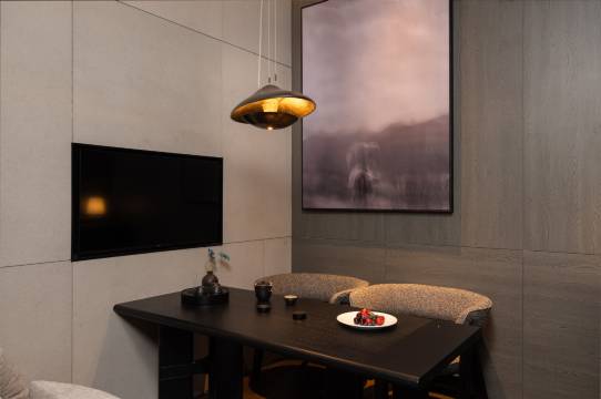 推开门,崭新的气息便温柔拂面。深色调的装潢与充沛的高级感,让整个空间通透得发亮。每处细节都光洁如新,透着高级的静谧。