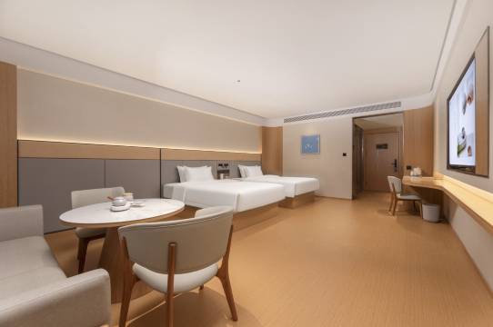 本店位于休宁县海阳镇齐云山西大道155号,酒店毗邻中国状元博物馆和天润发购物广场、地处安徽南端,居皖连浙通赣、为皖浙赣三省重要的交通枢纽,是您去黄山风景区、古村西递、宏村的必经之路,酒店地理位置优越,周边生活娱乐及餐饮配套设施齐全。酒店配备停车场,40+个停车位满足您的停车需求,自助早餐厅、洗衣房及健身房是您在休宁商务出差及旅行的首选。 本店隶属于华住集团,中档品牌。始终致力于提供契合国人审美和生活方式的酒店,把这片土地独有的住宿文化传递给每一位住客,是大众出行的口碑之选。酒店从东方智慧中汲取人文精神,以亲朋服务创造优质体验。走进大堂,竹木原色简洁明亮,禅茶香氛徐徐沁心,读一本书,赏一幅画,让每位旅人在东方美学的留白中,感受平和与松弛,是隐于喧嚣的城市第三空间。