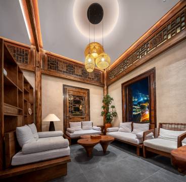 民宿最大的亮点在于其得天独厚的地理位置和观景视角。房间的落地窗和私享阳台正对着景区的核心水域和古塔。夜晚时分,对岸的吊脚楼群和古桥灯火辉煌,倒映在水中,宛如一幅流动的水墨画。在阳台上品茶或在浴缸中泡澡时能将这番盛景尽收眼底,体验感极佳。