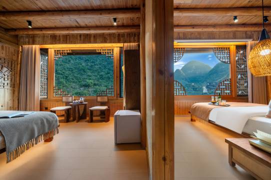 住进峰林吊脚楼民宿也太值了!木质结构的房间满是自然气息,吊脚楼的独特设计超有韵味,带盆栽的阳台视野绝佳,超级多的盆栽,被打理得也很好,推窗就是满眼峰林美景。晚上睡觉特别安静,房间里浴缸舒服又干净,干湿分离的卫浴设计超贴心。早上起来一打开阳台就能呼吸到清新的空气,不敢想象在这里长期居住有多舒服,远离了城市的喧嚣,空气好,环境好,管家服务更是没话说,热情又周到,全程体验感拉满,下次还来!