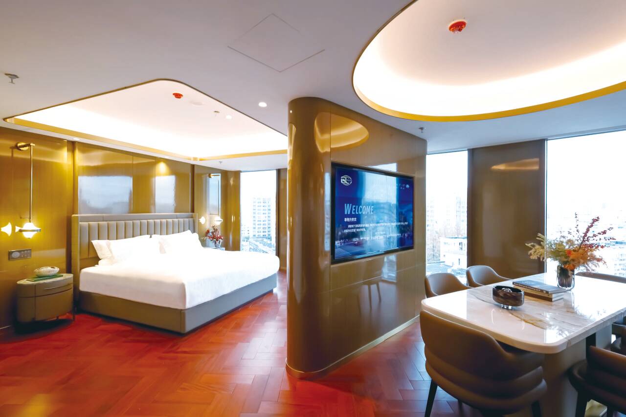 酒店停车场很大!距离地铁站也很近,对于我这种外地开车来的很友好!前台给我们升级入住了房间,房间很大,房间整体布局很温馨,特别是床头的锦鲤装饰画很有巧思,暖调的嵌入式灯带和壁灯搭配,氛围感特别好,晚上待着很舒服。