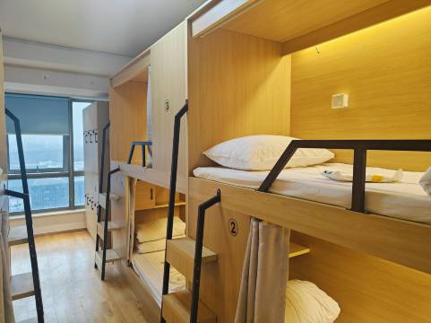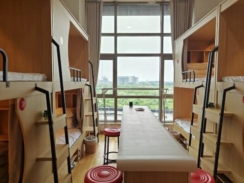 老板接待的,有10人间和6人间,两个卫生间都能洗澡,全天热水,被褥三件套一客一换很干净,有拖鞋吹风机热水壶洗衣机晾衣架,每天有保洁打扫卫生换洗床铺三件套,屋里宽带打游戏看电视不卡顿,屋里集中供暖一点不冷,晚上休息拉上帘子室友很安静,楼下吃饭出行逛商场很方便,坐地铁500米到生命科学园地铁站,公交站300米左右,老板人很好可以免费给调房而且长住还有优惠