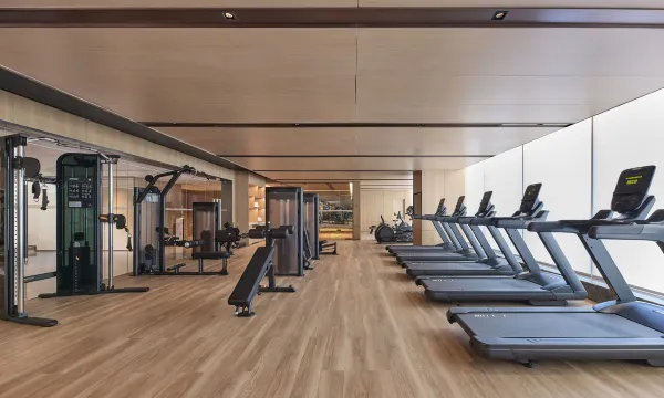 泳池水质清澈、水温舒适,健身房器械齐全且维护良好;交通与景观兼备。