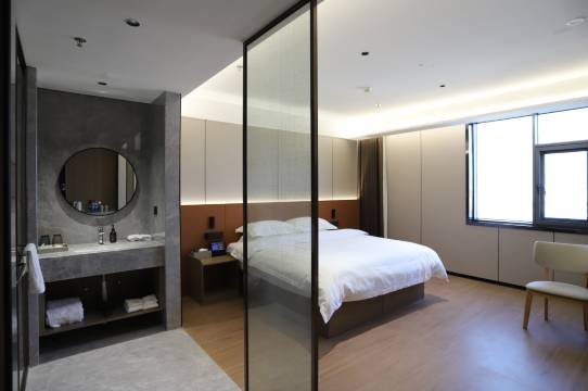 房间宽敞明亮,布置温馨,洗漱用品齐全,床睡得特别舒服,前台服务也特别好,出行住宿首选这家[强]