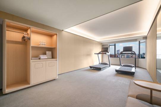 酒店房间明亮整洁,床品舒适。洗衣房、健身房设施齐全。大堂还有阅读区和免费茶饮。机器人送物很方便。