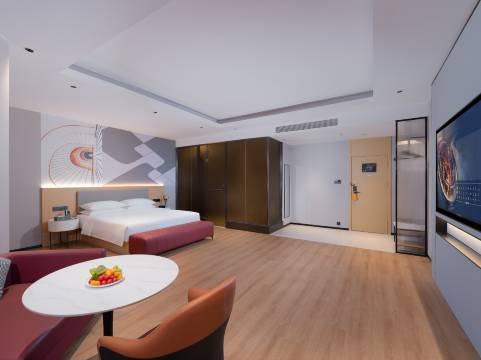 刚开业的酒店,设施非常新,位置就在步行街核心地段,下楼就是客家文化步行街,吃饭逛街特别方便。卫生干净、服务热情,还有智能客控和机器人送物。热水也快,床垫舒服。