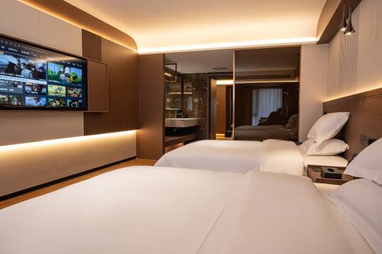 酒店以匠心打造城市轻奢出行体验,致力于为商旅宾客与休闲游客提供一处静谧、智能且充满格调的理想下榻之所。 酒店深谙品质生活的细节需求,在客房设计中融合现代科技与人性化考量。每间客房均配备高-效隔音的三层玻璃系统窗,有效阻隔外界喧嚣,营造出静谧安宁的休憩环境。配合中央空调系统,确保室内温度宜人、空气清新,四季皆享舒适体感。 我们智能居住潮流,客房接入全屋智能控-制系统。宾客可通过语音或移动设备,轻松调节灯光、窗帘、电视,享受科技带来的便捷与从容。睡眠是旅途中重要的修复,因此我们特别定制了加大尺寸的床具,搭配高品质床品,旨在为您带来云端般深沉的睡眠体验。 此外,酒店还注重空间的开阔与实用,客房面积大,布局舒展,设计简约时尚。无论是短暂商务停留,还是悠长假期探索,酒店都期待以卓-越的设施、贴心的服务与智能化的体验,成为您抵达太原的安心之选。 酒店静享智能,安眠如家。