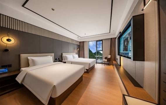 房间装修很新,风格现代中带着古典,带有智能客房系统,打开窗帘就能看到附近山川的风景,此外,烧水壶会每天消毒,马桶很智能很卫生,酒店会附赠一次性马桶套,这是这次入住最打动我的地方。