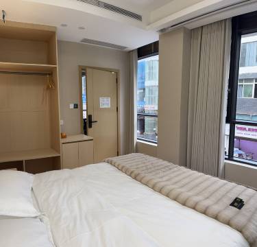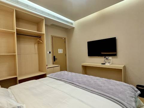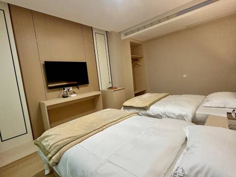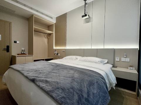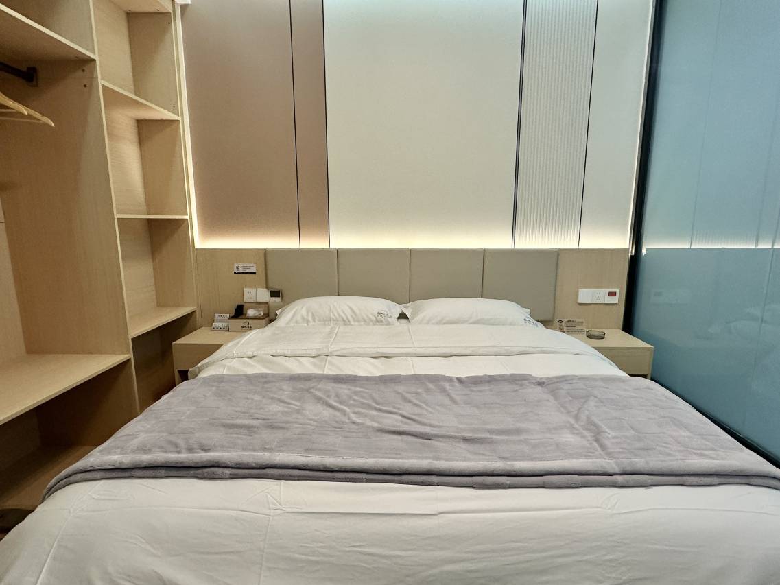 房间较为宽敞,环境挺好的,舒适,干净,卫生。设备齐全,床很舒服,有毛毯,还有小零食。老板很热情大方,还到高铁站来接我们了,服务态度真的很不错。