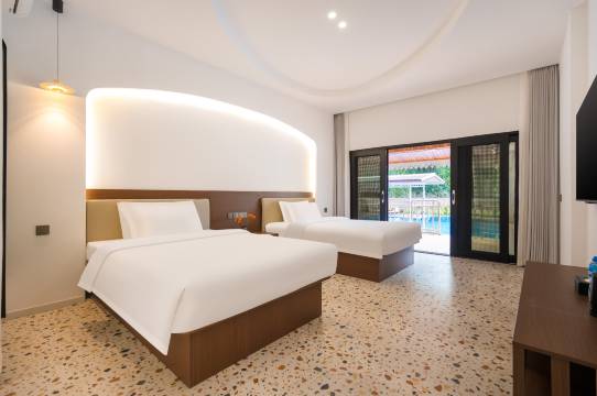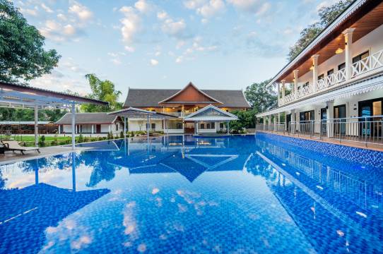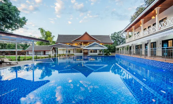 房间非常非常的新,你根本想象不到在老挝这个地方还有这么有性价比的房间,酒店的服务非常上心,整体体验非常良好,还有接送的服务,到琅勃拉邦车站,会来接。而且酒店房间环境很干净,整体房间很大。住的是榻榻米的房型,顶的一笔。家人们无脑冲好吧。酒店的泳池也特别蔚蓝。