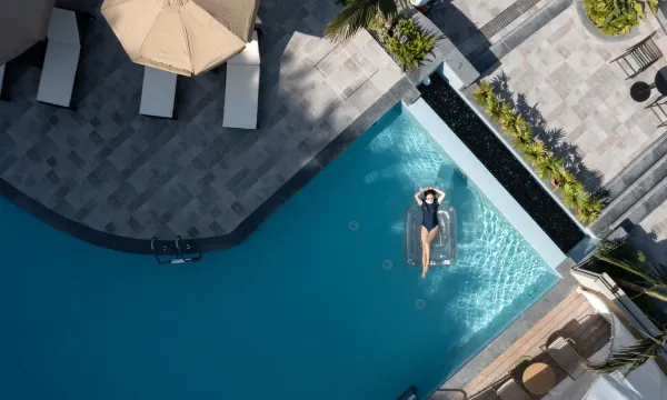 池景阳台大床房的泳池景观太加分了,晚上泳池灯光超美,椰树公路加烟花超有氛围感,怎么拍都出片。房间法式中古风很有氛围,离海边也近。有电梯和洗衣机,卫生做得很细致。